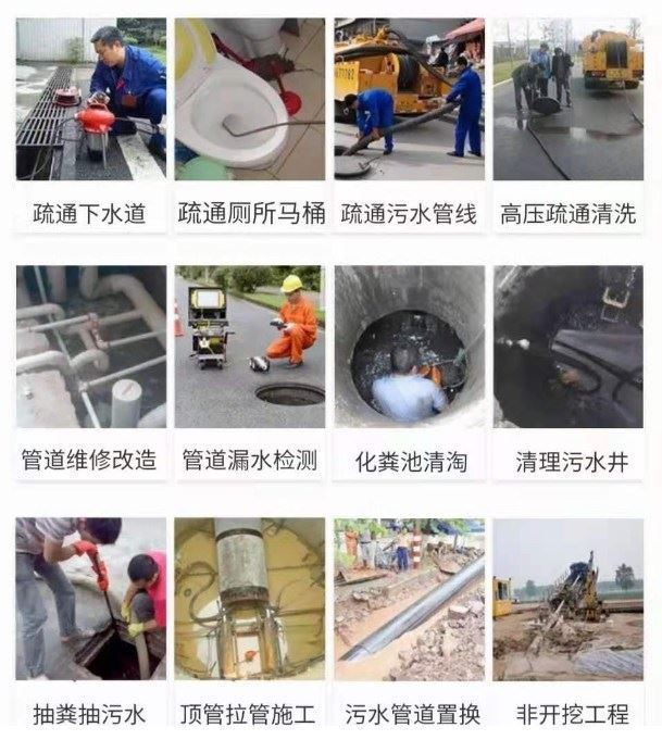 本公司业务范围; 一、管道疏通: 1、下水道疏通:普通住宅、家庭、酒店、公司、学校、餐饮店铺、美容美发等单位的下水道;小便池、阴沟、窑井、化粪池等各种下水管道疏通清理,污水管道疏通清理。 2、马桶疏通...